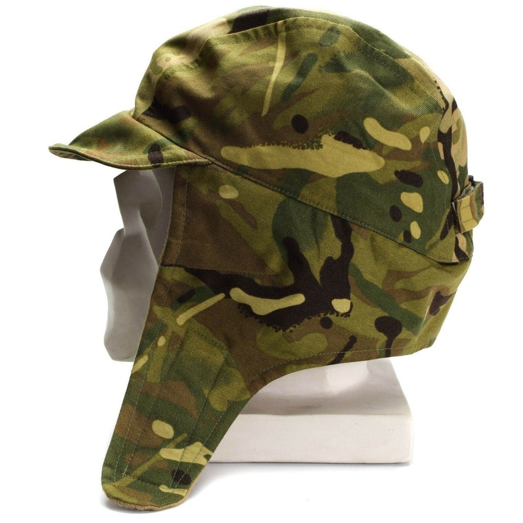 Dies ist eine wasserdichte Fallschirmjägermütze des britischen Militärs im Multi-Terrain Pattern (MTP)-Tarnmuster. Es soll den Kopf schützen und den Träger bei Nässe trocken halten. Die Kappe ist im klassischen Fallschirmjäger-Stil gefertigt und verfügt über das MTP-Tarnmuster, das entwickelt wurde, um sich an verschiedene Gelände britischer Militäreinsätze anzupassen. Die Kappe ist für den Einsatz durch Fallschirmjäger und anderes Militärpersonal konzipiert und sowohl langlebig als auch praktisch für den Einsatz in anspruchsvollen Umgebungen.