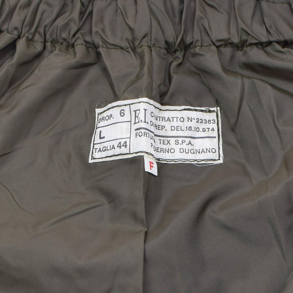 Dabei handelt es sich um italienische Militär-Regenhosen, die ursprünglich an Angehörige der italienischen Luftwaffe ausgegeben wurden. Sie sind in der Farbe OD Olive erhältlich und für zusätzliche Wärme und Komfort mit Thermofutter versehen. Die Hose verfügt über seitliche Beinöffnungen mit Klettverschluss, die das An- und Ausziehen über Stiefeln oder anderem Schuhwerk erleichtern. Die Hose ist so konzipiert, dass sie den Träger vor Regen und anderen Elementen schützt, und ihre Konstruktion in Militärqualität sorgt dafür, dass sie langlebig und langlebig ist. Italienische Militär-Regenhosen können allein oder über anderen Kleidungsschichten getragen werden, um zusätzliche Isolierung und Schutz vor den Elementen zu bieten.