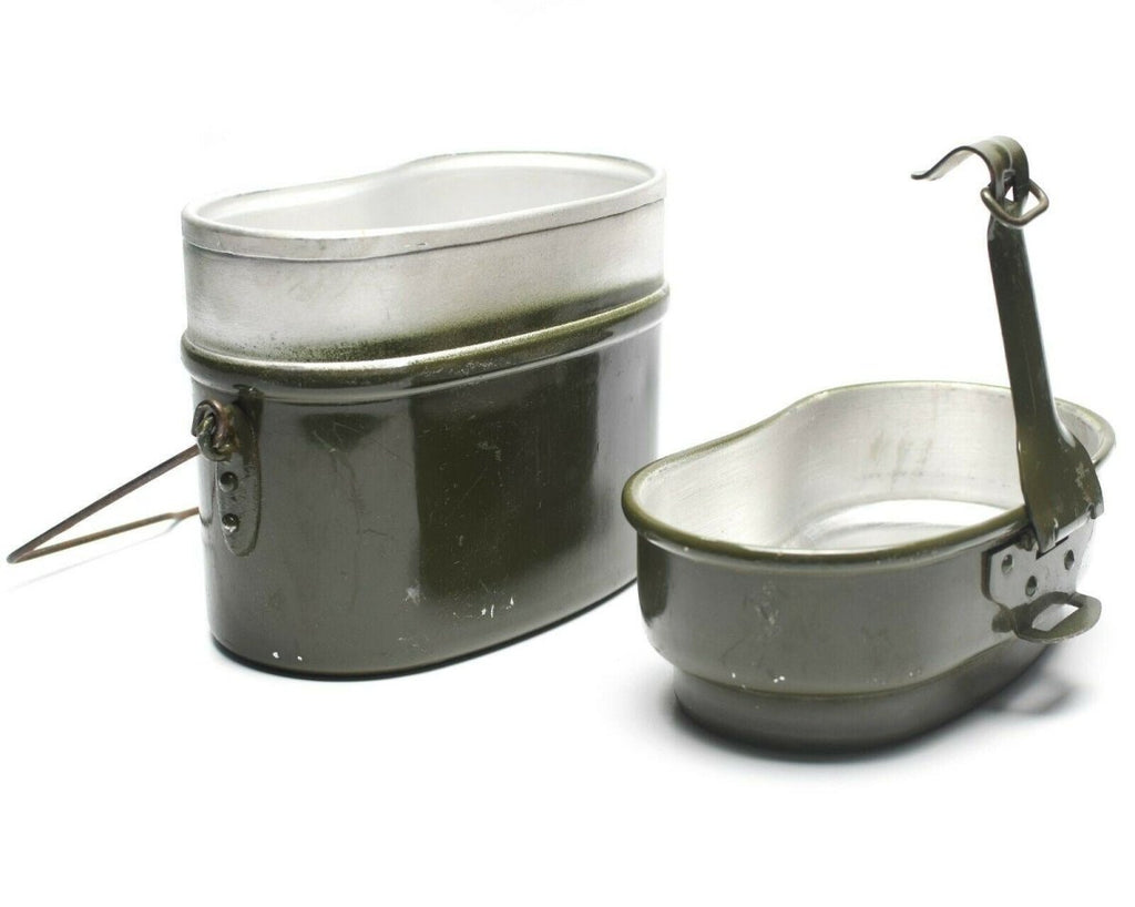 Echtes Essgeschirr der ungarischen Armee. Aluminium-Militär-Bowlertopf, 2-teiliges Set