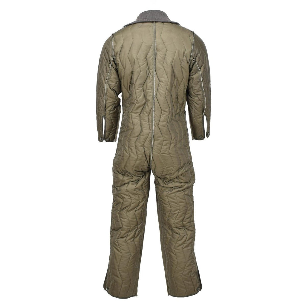 Der gesteppte Overall des deutschen Militärs ist ein thermisches gestepptes Futter, das bei kaltem Wetter für Wärme sorgt. Es soll als Schicht unter einem Overall getragen werden, der üblicherweise von Militärangehörigen zum Schutz vor rauen Umgebungsbedingungen verwendet wird. Der Innenanzug ist mit Knöpfen an den Manschetten und Beinen ausgestattet, um einen sicheren Sitz zu gewährleisten und das Eindringen kalter Luft zu verhindern. Es besteht ebenfalls aus einem olivfarbenen Material, das üblicherweise beim deutschen Militär verwendet wird. Insgesamt ist dieser gesteppte Overall des deutschen Militärs eine funktionelle und zuverlässige Option für alle, die bei kaltem Wetter Wärme und Schutz benötigen.
