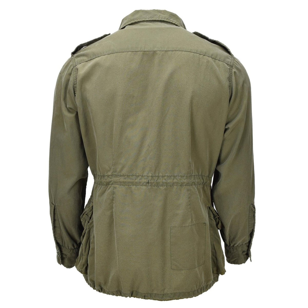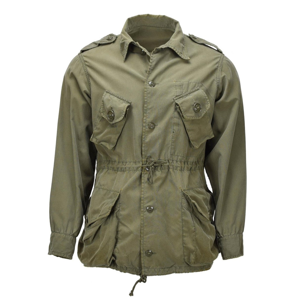 Authentische Kampffeldjacke der kanadischen Armee aus originalen Militärüberschüssen. Diese leichte Jacke aus strapazierfähigem Baumwollstoff ist für Feldeinsätze und ganzjähriges Tragen konzipiert. Es verfügt über vier große geknöpfte Taschen, einen verstellbaren Kordelzug in der Taille, verstärkte Nähte und Schulterklappen für einen klassischen Military-Look. Diese Jacken weisen durch den vorherigen Gebrauch starke Gebrauchs- und Abriebspuren auf, sind aber weiterhin voll funktionsfähig. Einzelheiten zum Zustand entnehmen Sie bitte den Fotos. Die olivgrüne Farbe und das Vintage-Design machen es perfekt für Sammler, Reenactors oder alle, die Wert auf echte Armeekleidung legen.