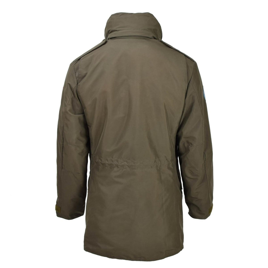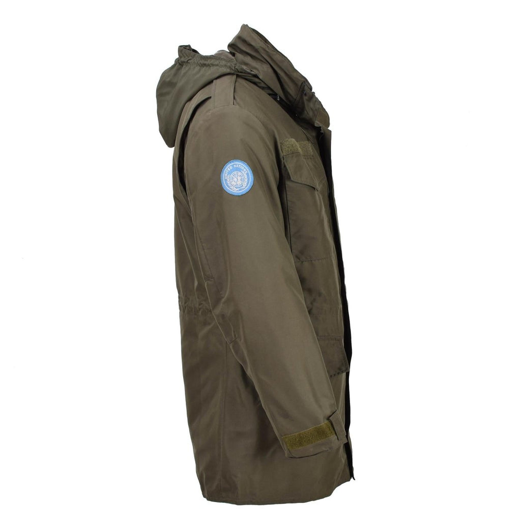 - Das Design des Goretex-Militärparkas umfasst einen Stehkragen für ein elegantes Erscheinungsbild. Geeignet sowohl für ungezwungene Ausflüge als auch für formelle Anlässe. Ein Abzeichen des Österreichischen Bundesheeres auf der Schulter sorgt für einen einzigartigen Hauch von Authentizität. Das herausnehmbare Innenfutter sorgt für zusätzliche Wärme und der Reißverschluss sorgt für einen festen und sicheren Sitz.