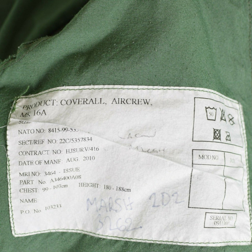 Mono de traje de aramida original de la tripulación aérea MK15 RAF del ejército británico en verde salvia, un artículo excedente que ejemplifica la precisión y funcionalidad del equipo militar británico. Este mono de traje de aramida, diseñado para la tripulación aérea de la Royal Air Force (RAF), es un testimonio de calidad y rendimiento de primer nivel.