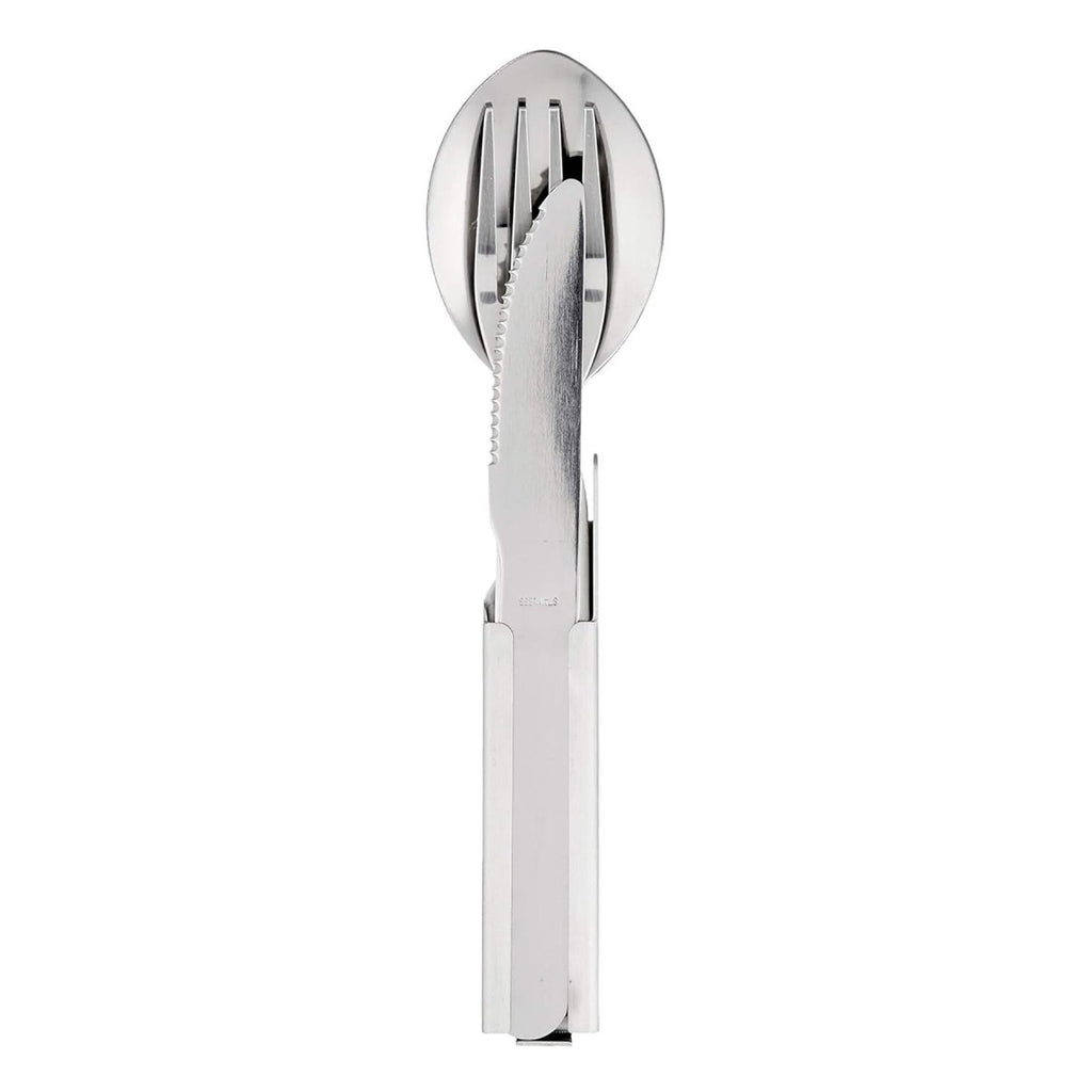 • La transición de una actividad a otra es más sencilla con esta solución todo en uno. Mantenga sus cubiertos organizados y nunca más se preocupe por perder una pieza. El abrelatas integrado añade comodidad adicional y te ayuda a estar preparado para cualquier sorpresa en tu aventura.