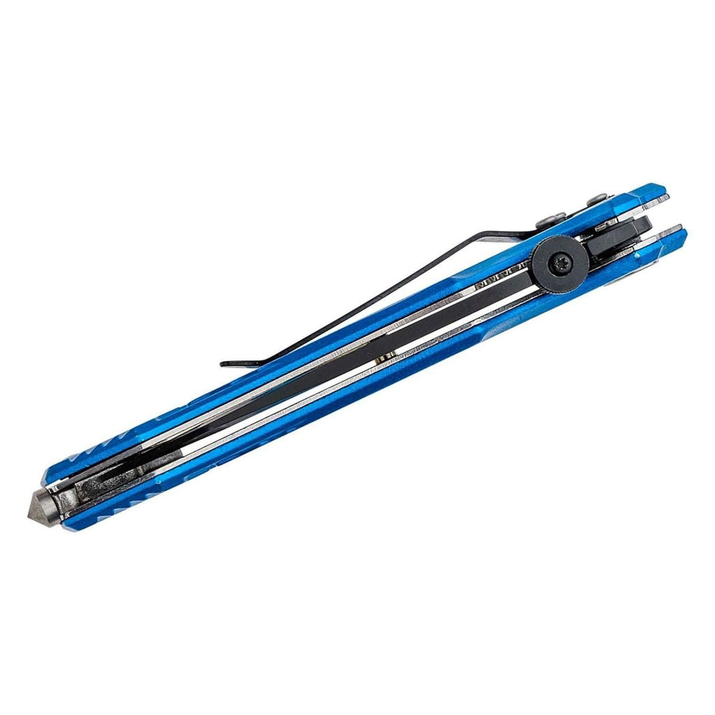 - El mango de aluminio anodizado azul destaca no sólo por su estilo sino también por su construcción robusta y agarre ergonómico. Se adapta de forma segura a la mano incluso bajo presión. El mango presenta un emblema paramédico, que simboliza confiabilidad y preparación en situaciones que salvan vidas.