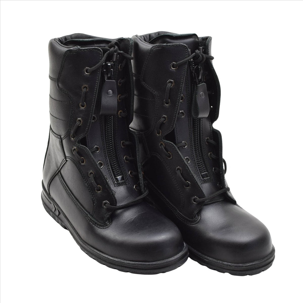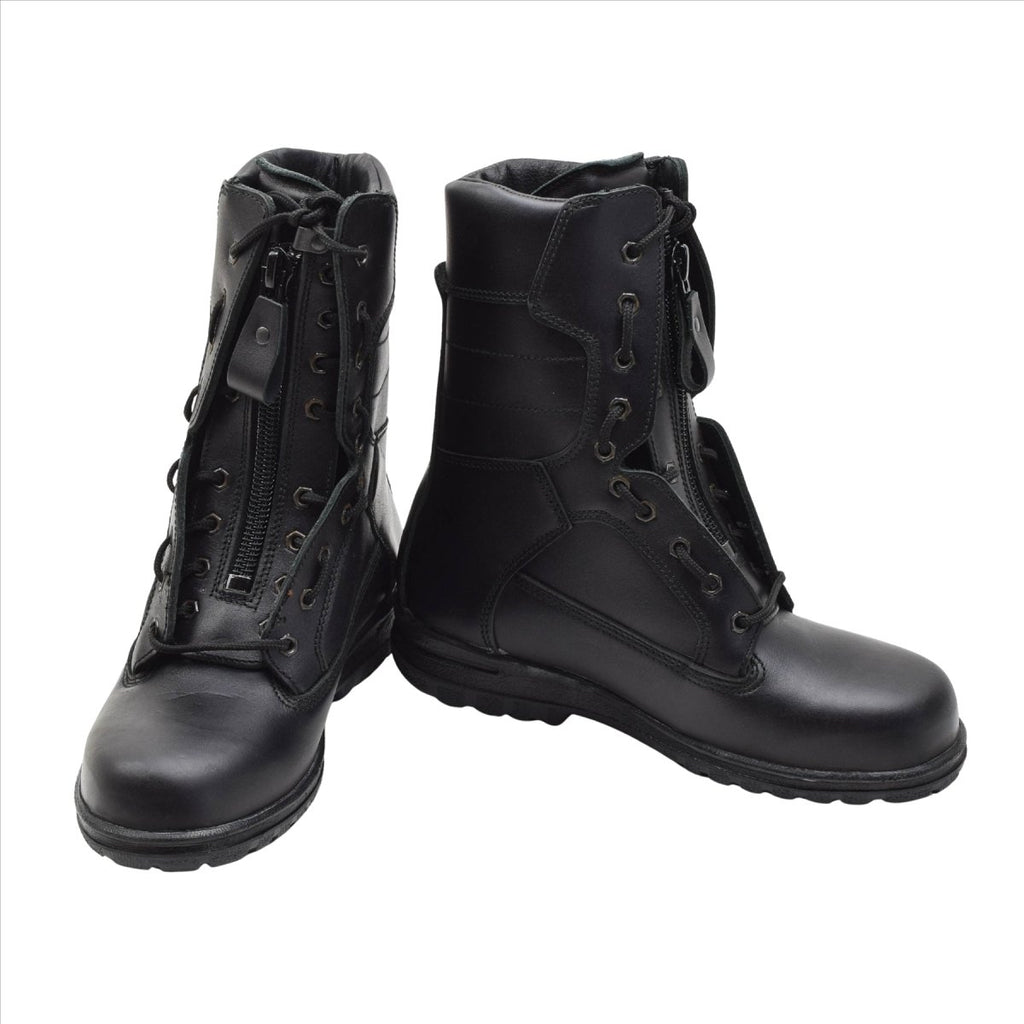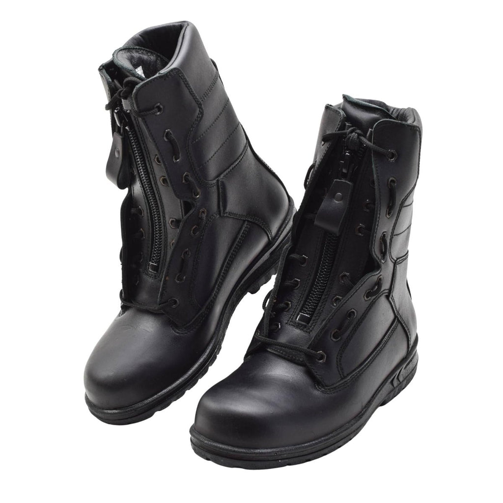 Experimente la auténtica calidad militar con las botas de piloto de la Fuerza Aérea Holandesa “Universal”. Fabricadas con cuero negro genuino de primera calidad, estas botas tácticas fueron diseñadas para uso profesional en cabinas de aviones y en el aeródromo. La suela de goma antiestática y resistente al aceite garantiza un excelente agarre en diversas superficies, mientras que la cremallera lateral integrada con cordones proporciona un sistema de encendido y apagado rápido y sencillo. Durable, cómodo y funcional: perfecto para entornos exigentes. Fabricado originalmente en 2015 y procedente de existencias genuinas de las Fuerzas Armadas Holandesas.