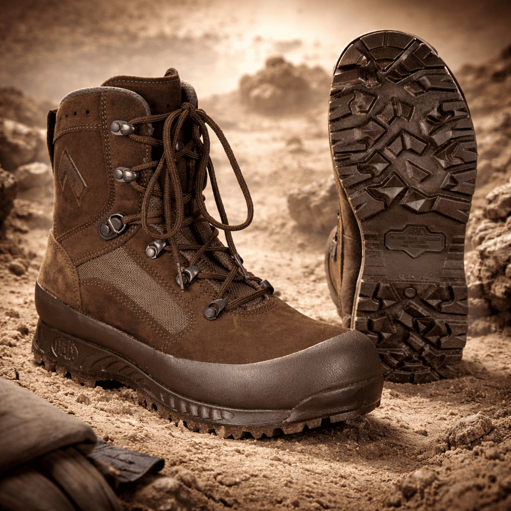 Estas originales botas tácticas militares británicas para mujer de HAIX están diseñadas para condiciones exigentes de campo y desierto. El modelo High Liability está diseñado para cumplir con los requisitos militares y ofrece durabilidad, comodidad y rendimiento confiable durante un uso prolongado. Fabricadas con una combinación de gamuza y materiales textiles de alta calidad, las botas son transpirables e hidrofóbicas, lo que ayuda a mantener los pies secos y cómodos en ambientes cálidos y secos.