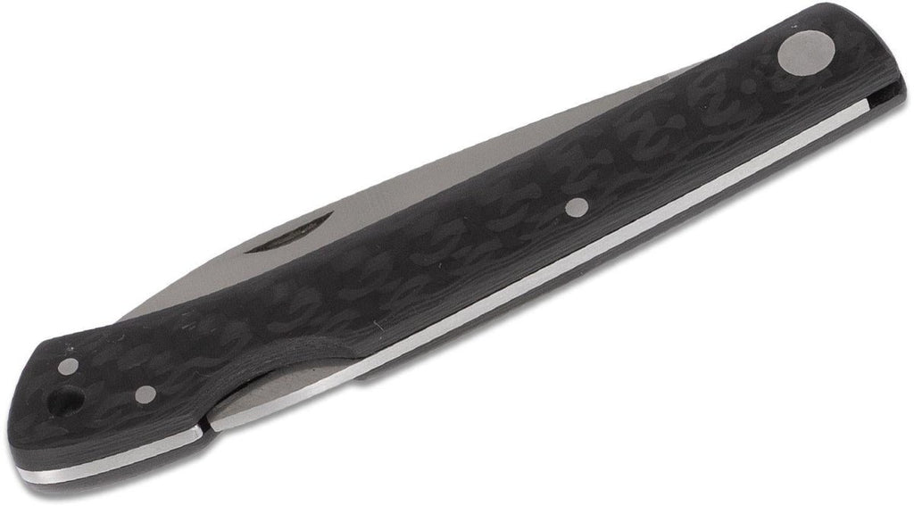 - El mango de fibra de carbono proporciona un agarre fuerte pero ligero. Su forma ergonómica garantiza comodidad y reduce la fatiga de la mano durante un uso prolongado. El mango añade durabilidad sin sacrificar la portabilidad, haciendo que el cuchillo sea fácil de llevar dondequiera que vayas.