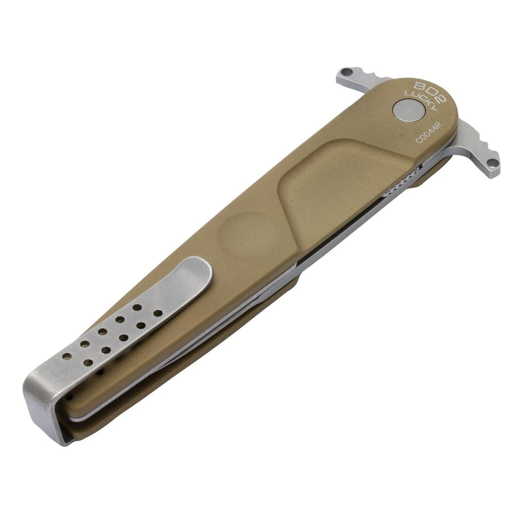El Navaja ExtremaRatio BD2 LUCKY DESERT es un navaja de bolsillo fiable y de alto rendimiento diseñado para uso táctico y cotidiano. Es Hoja de acero Bohler N690 de borde liso. ofertas Nitidez, retención de bordes y durabilidad excepcionales..