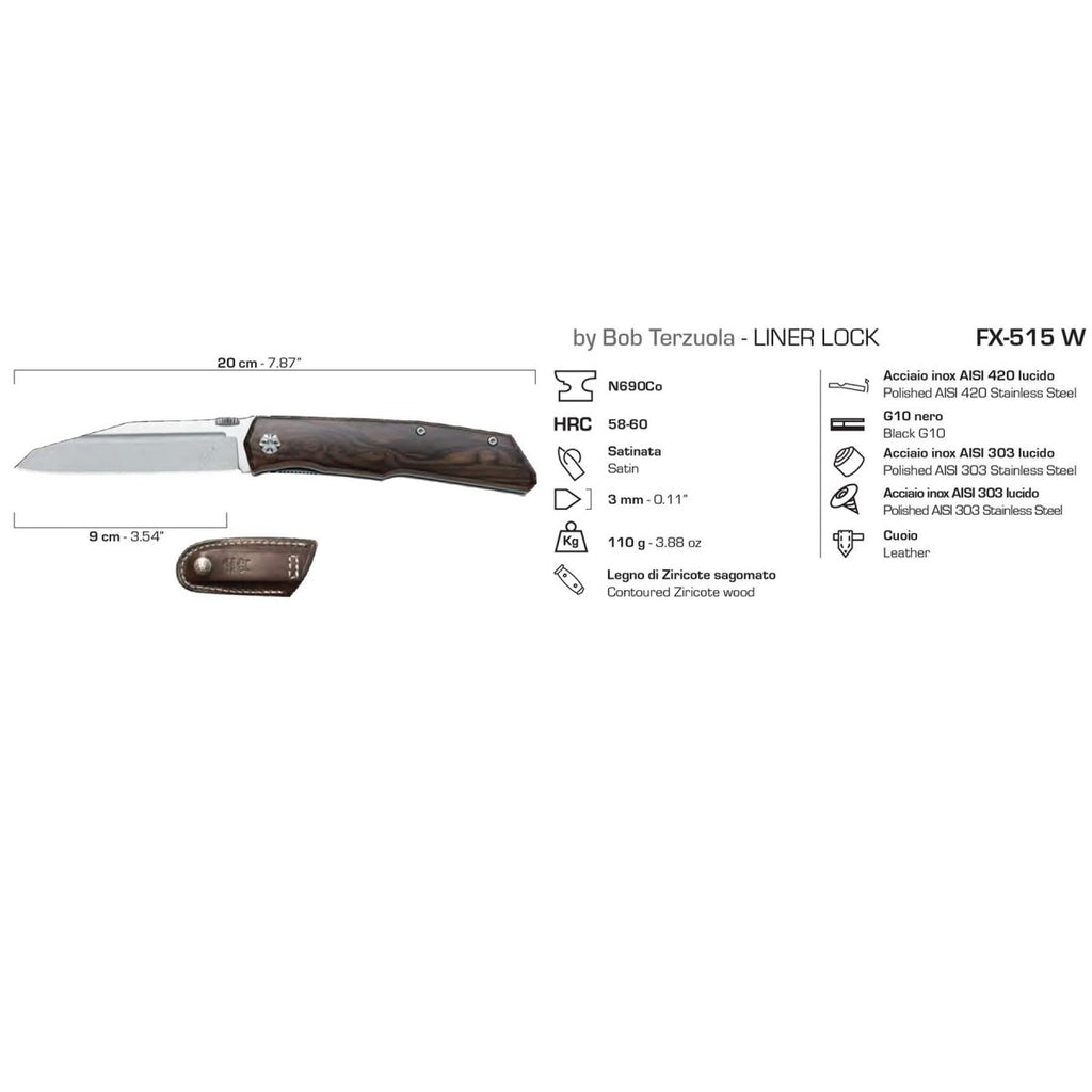 La navaja plegable FoxKnives Terzuola Design FX-515W se destaca como una elegante navaja de bolsillo creada por el legendario diseñador Bob Terzuola.