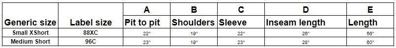 | Medio corto | 96c | 23" | 19" | 23" | 28" | 60" |