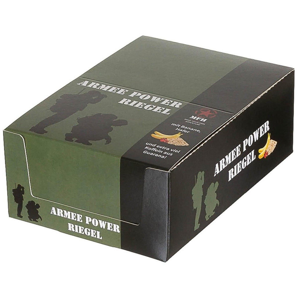 La Barrita Energética Army de MFH es una barrita energética a base de avena con sabor a plátano y guaraná, diseñada para actividades al aire libre y situaciones de exigencia física. Contiene cafeína añadida procedente del extracto de guaraná, lo que proporciona un rápido impulso de energía cuando es necesario.