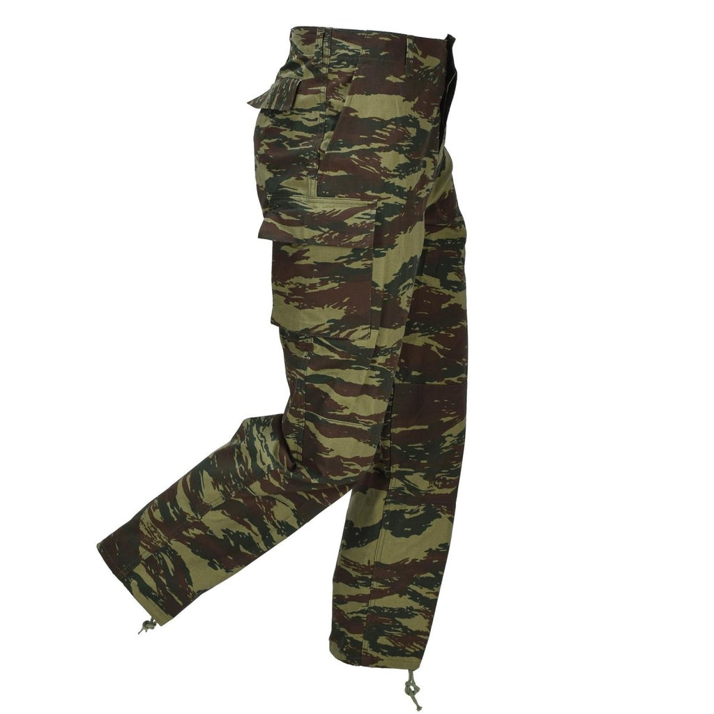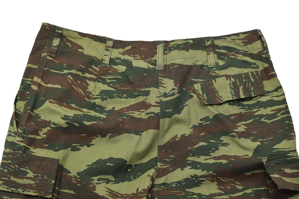 Los pantalones están confeccionados con un tejido resistente y equipados con múltiples bolsillos cargo, que ofrecen un almacenamiento cómodo para los artículos esenciales. El distintivo camuflaje del lagarto griego proporciona una ocultación eficaz en bosques y terrenos mixtos.