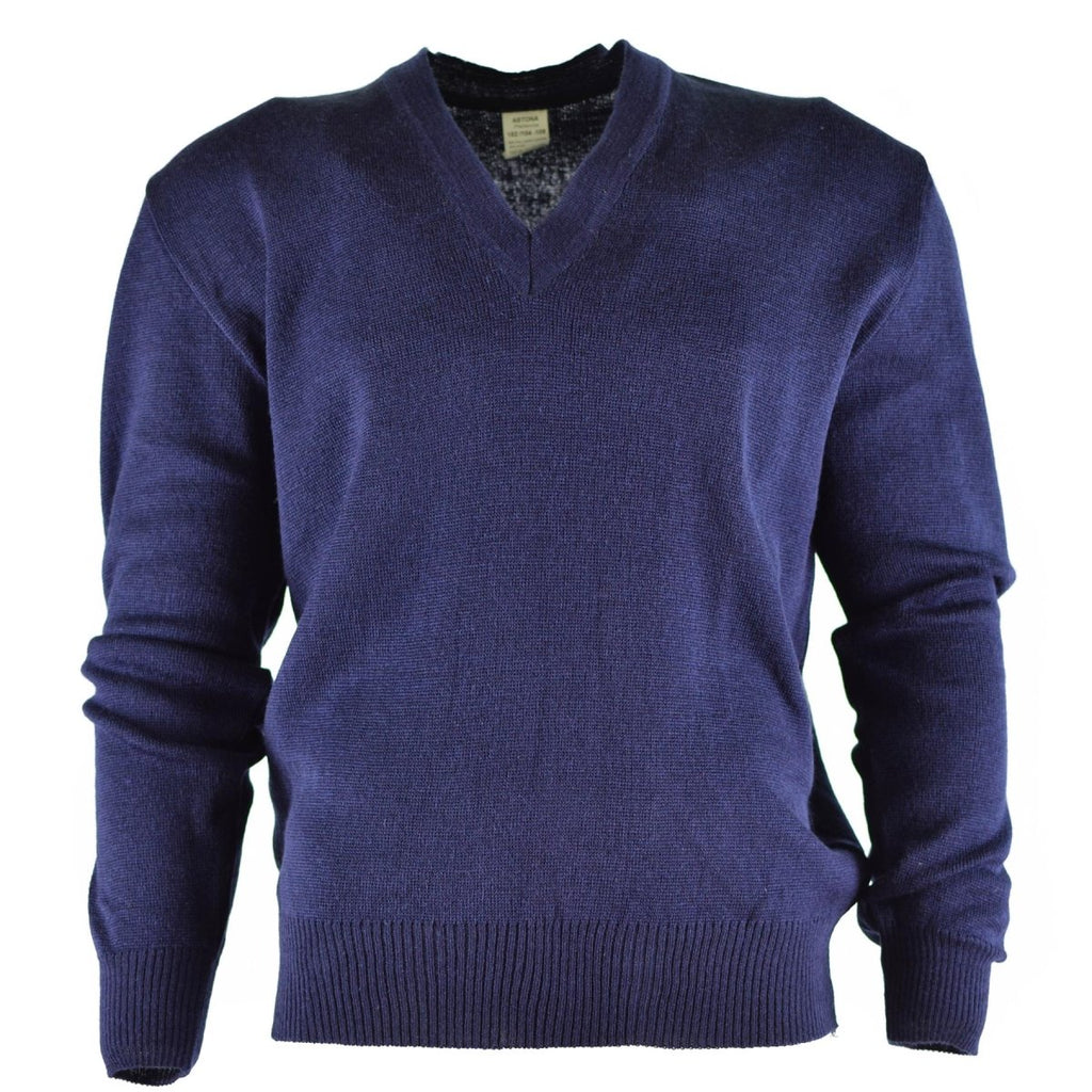 Sétero original del ejército checo Jumper lana azul de lana en V excedente militar nuevo