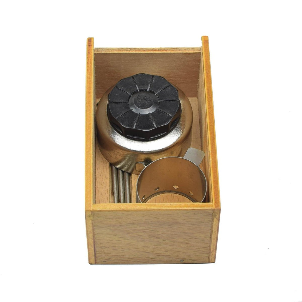 - L'attrait vintage de ce poêle militaire attirera les collectionneurs et les amateurs d'équipement de plein air. Il rappelle une époque où la simplicité et la durabilité étaient primordiales dans les équipements d'extérieur. La boîte en bois qui contient tous les composants garde tout organisé, tandis que la boîte elle-même ajoute au charme nostalgique du poêle.