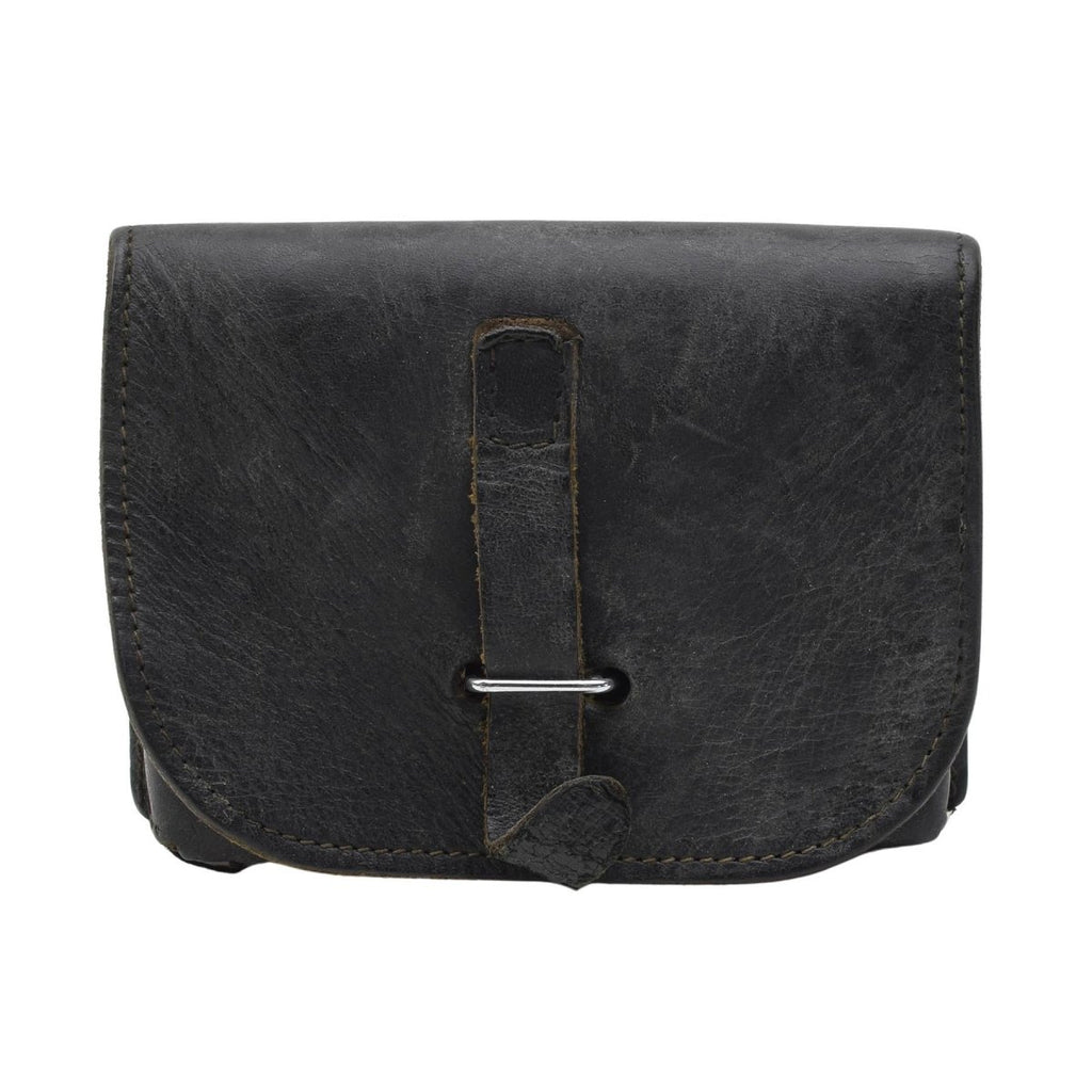 Pochette de chargeur militaire italienne originale en cuir avec boucles métalliques, petite taille, noire