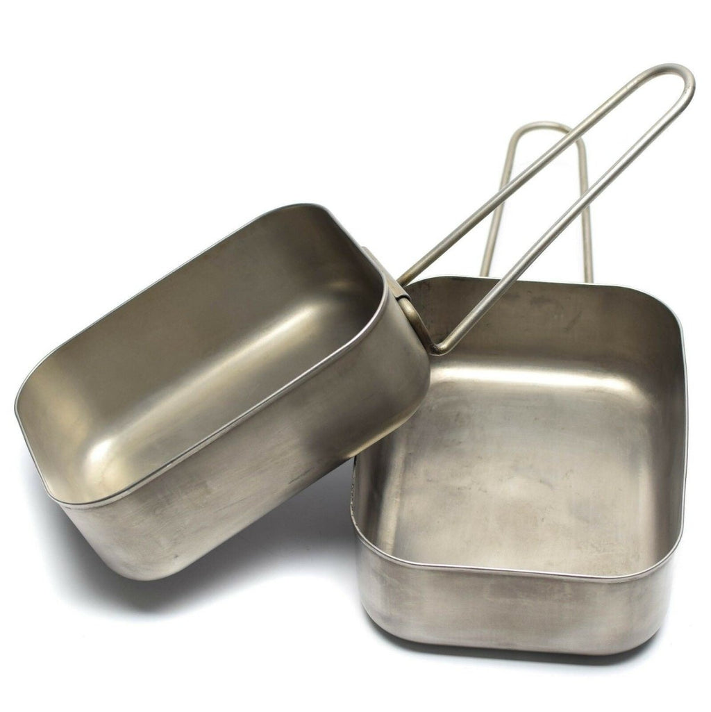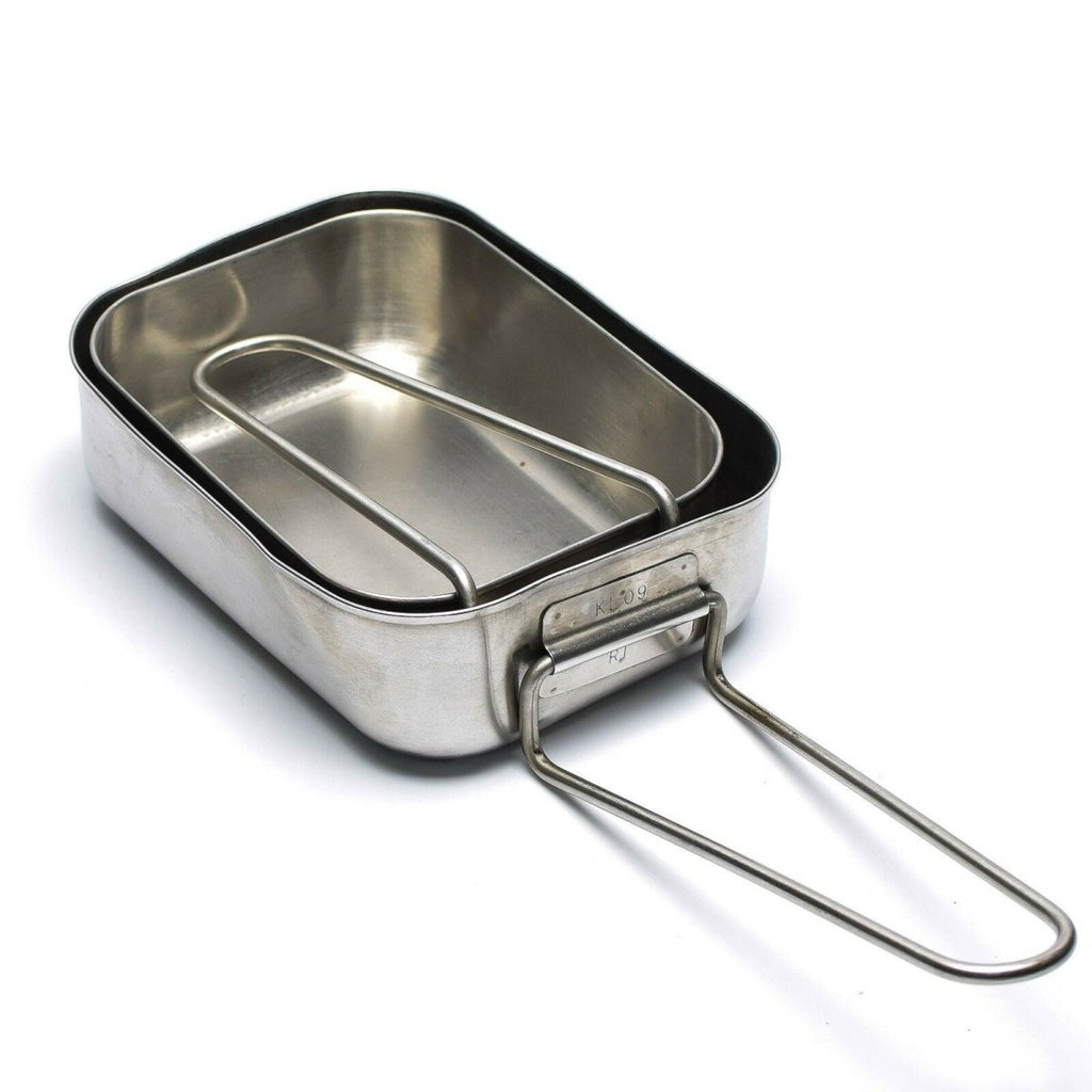 Gamelles militaires néerlandaises originales en acier inoxydable 2 pièces Kit de gamelles Cuisinière Militaire Bushcraft