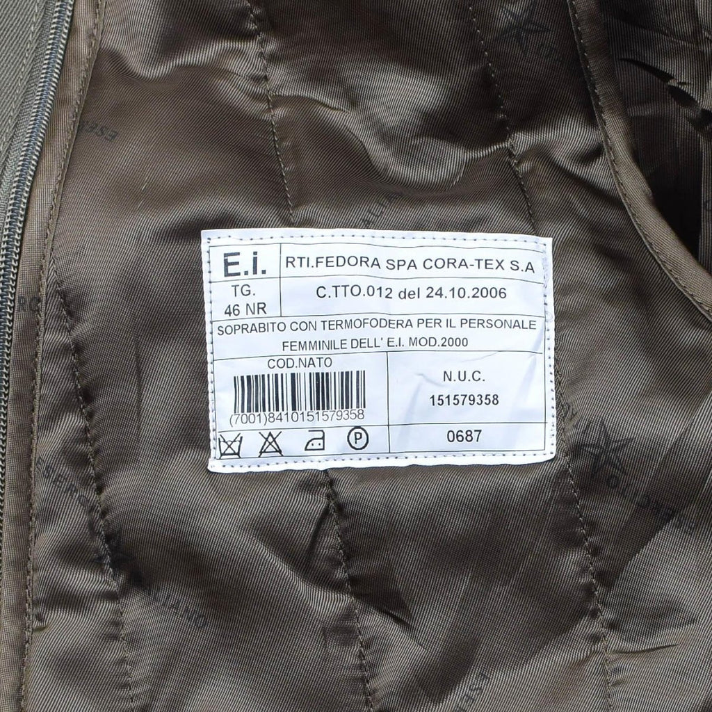 Trench-coat militaire italien original pour femme olive long avec doublure de ceinture armée NEUF