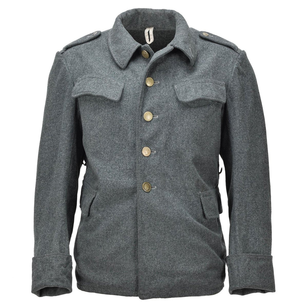Veste militaire suisse vintage avec épaulettes boutonnées en laine grise