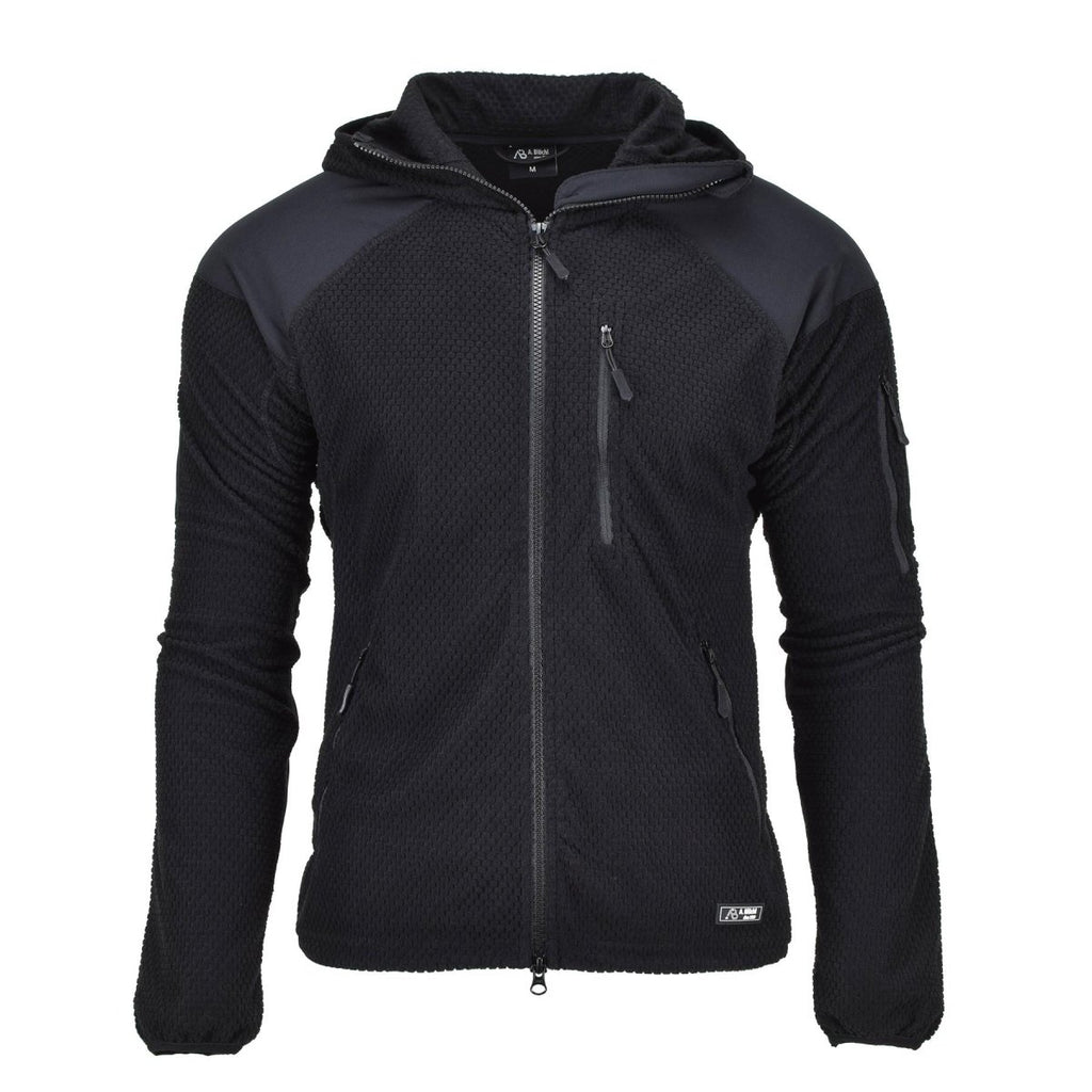 Questa giacca termica in pile con cappuccio in stile militare A. Blochl offre una protezione essenziale contro il freddo. Dotato di cerniera con protezione per il mento, cappuccio aderente, coulisse regolabile sull'orlo, polsini elastici, colletto rialzato e gomiti rinforzati, rimarrai caldo e protetto in tutte le condizioni.