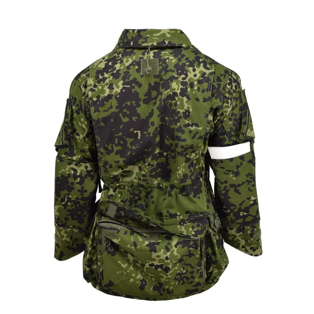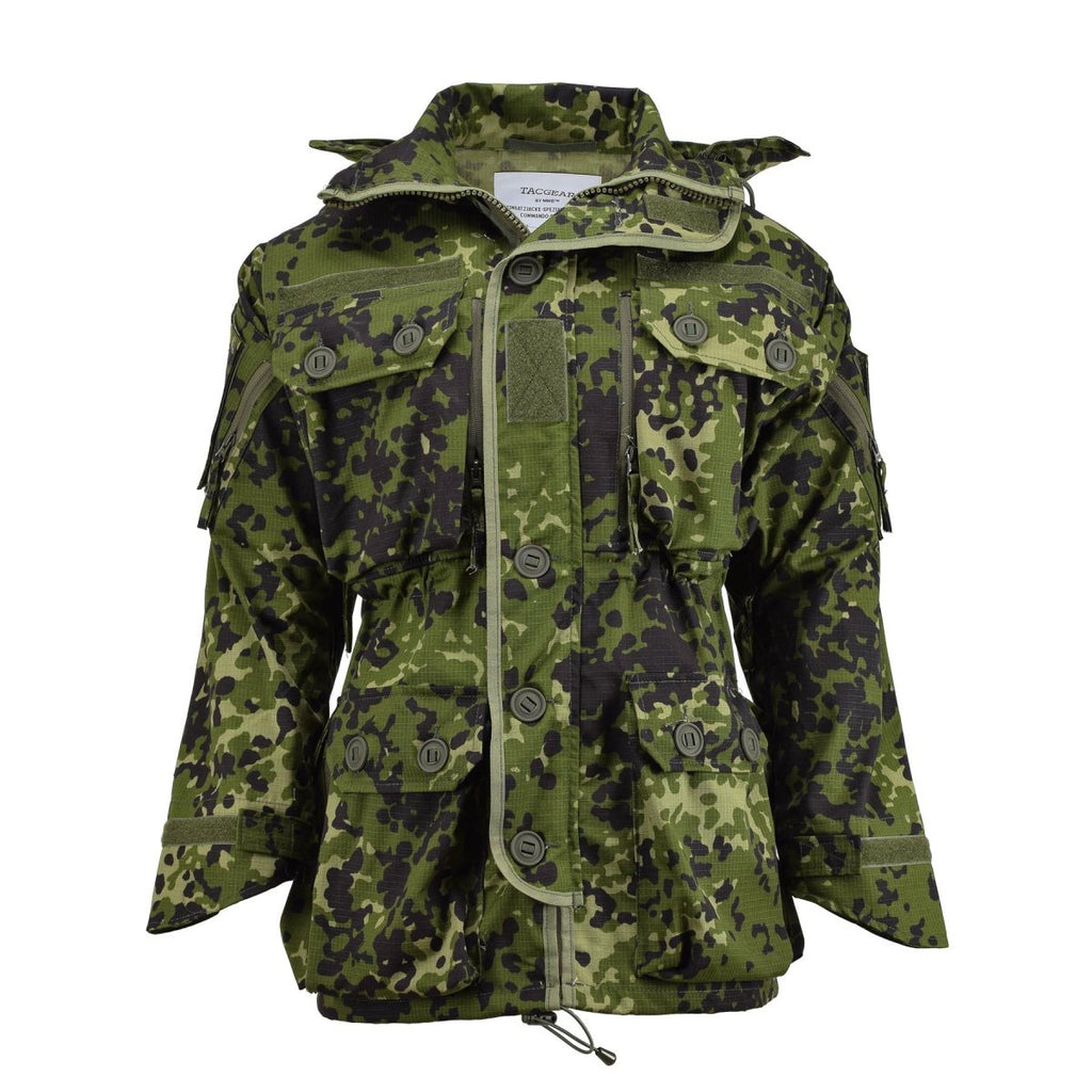 Presentazione della giacca grembiule in stile militare danese TACGEAR in Ripstop Commando M84 Camouflage, un omaggio al patrimonio militare danese. Realizzata per il guerriero moderno, questa giacca unisce funzionalità e stile, offrendo prestazioni di prim'ordine.