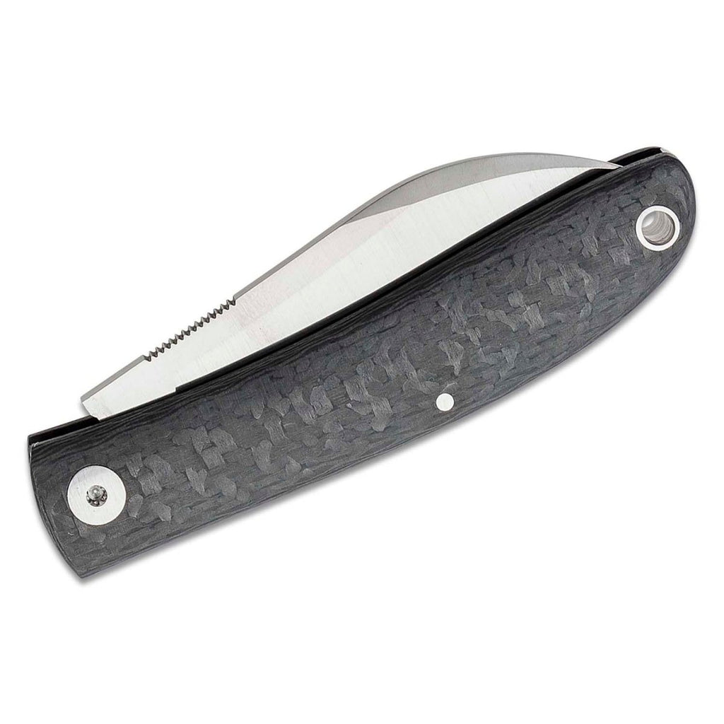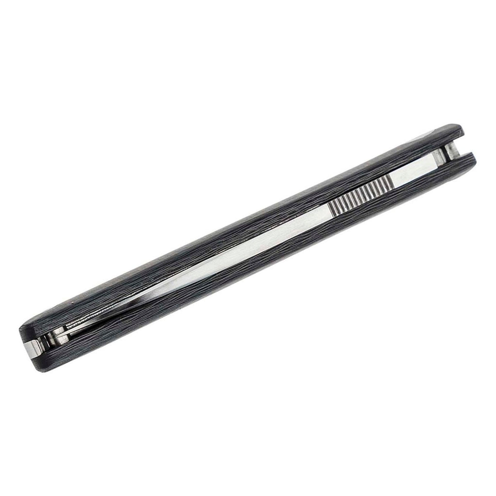 • De handvat van koolstofvezel biedt een lichtgewicht, ergonomische en veilige grip. Het zorgt ervoor comfort en controle of je het mes nu gebruikt voor kleine klusjes of veeleisende projecten. Het strakke, moderne ontwerp voegt daaraan toe stijl zonder dat dit ten koste gaat van de prestaties.