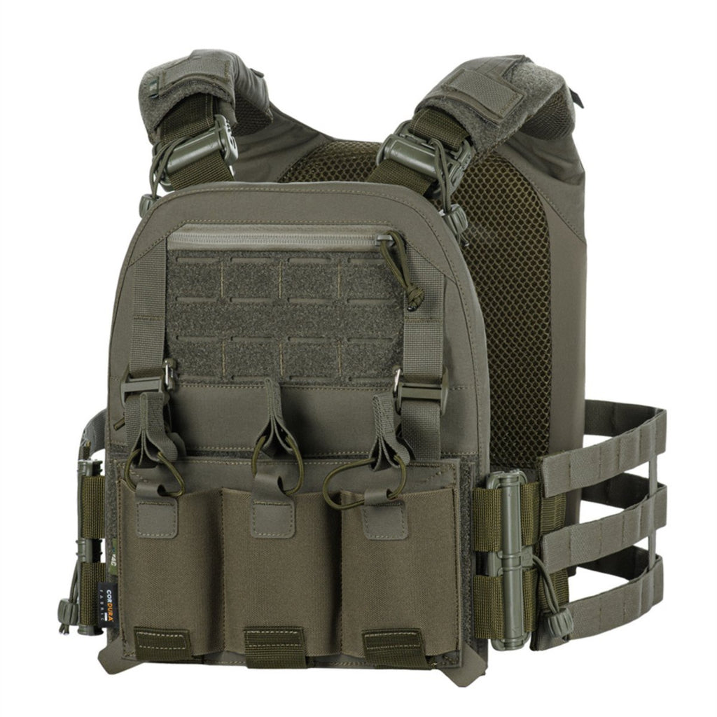 Het MOLLE-compatibele webbingsysteem op de voor- en achterpanelen maakt de bevestiging van extra tactische uitrusting mogelijk, zoals magazijntassen, gereedschapstassen, medische kits of drinksystemen. Het snelverstelsysteem zorgt voor een snelle montage en eenvoudige configuratie, afhankelijk van de missievereisten.