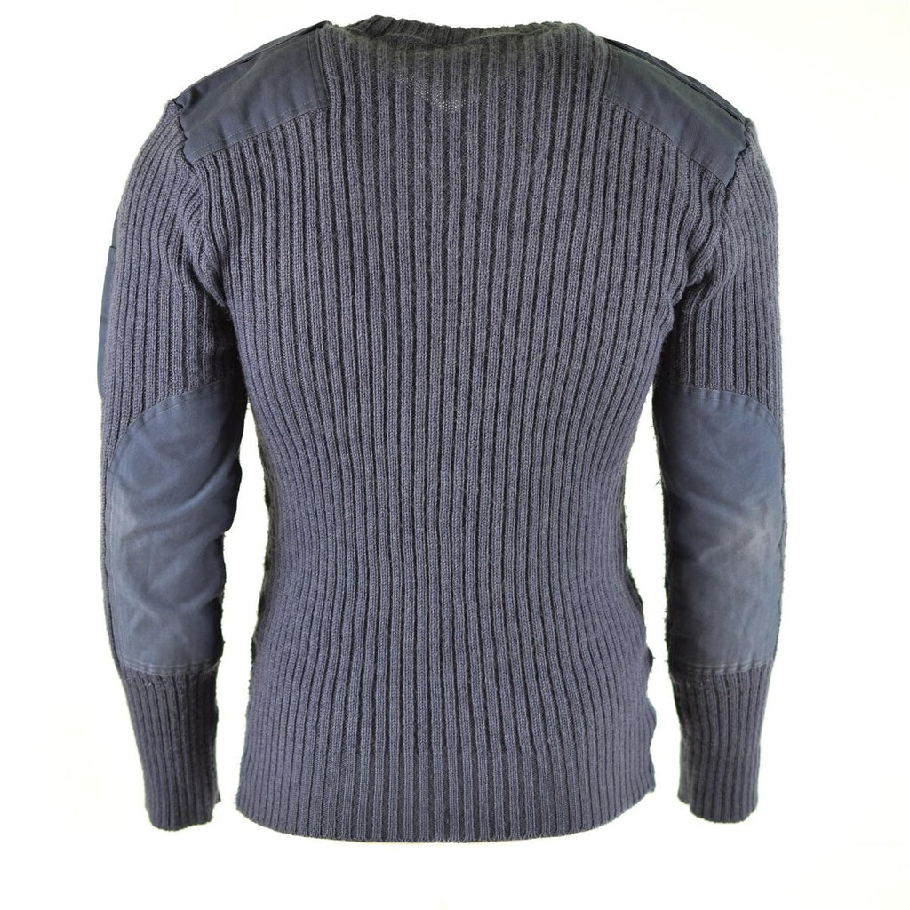 De grijs/blauwe kleur van de trui is een traditioneel militair kleurenschema en zorgt voor een klassieke, ingetogen look die zowel stijlvol als functioneel is. De trui heeft een duurzame en stevige constructie, met versterkte elleboog- en schouderstukken die extra duurzaamheid en bescherming bieden op plekken met veel slijtage.