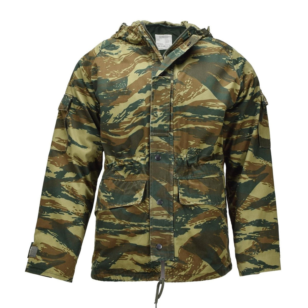 De jas heeft een klassieke M65-veldparka-snit en wordt geleverd met een uitneembare voering, waardoor aanpasbaar gebruik in verschillende weersomstandigheden mogelijk is. Een geïntegreerde capuchon biedt extra bescherming tegen wind en koelere temperaturen. Het kenmerkende Griekse hagedis-camouflagepatroon geeft de jas zijn authentieke militaire uitstraling.