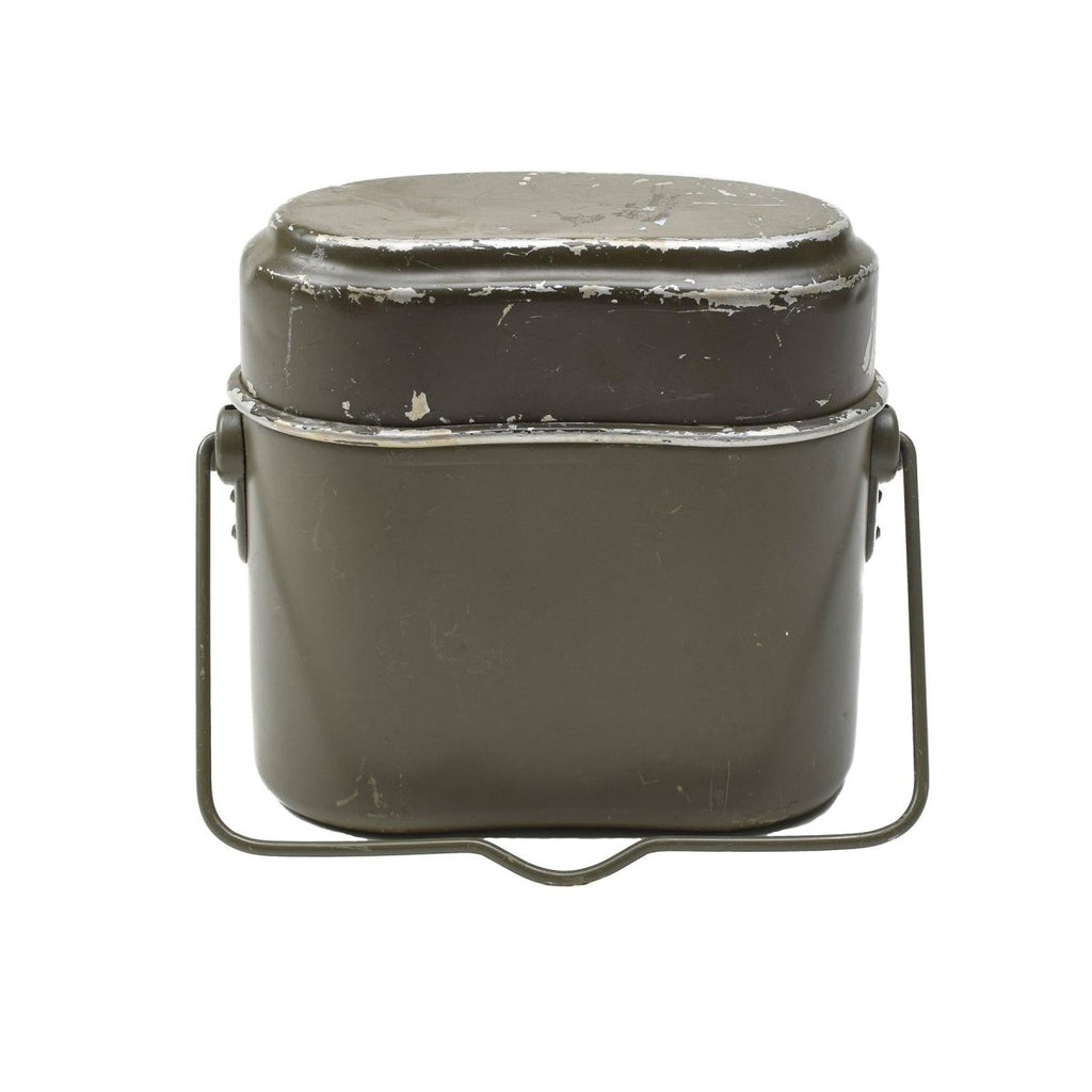 - De kantinekookset beschikt over een hoogwaardig Trangia/Svea-fornuis, perfect voor het snel verwarmen van voedsel en water. De stevige constructie is geschikt voor intensief gebruik, maar blijft licht en draagbaar. Deze set bevat een Oostenrijkse puinhoop, die kleine opslagsporen en licht verfverlies vertoont, wat karakter toevoegt zonder dat dit ten koste gaat van de prestaties.