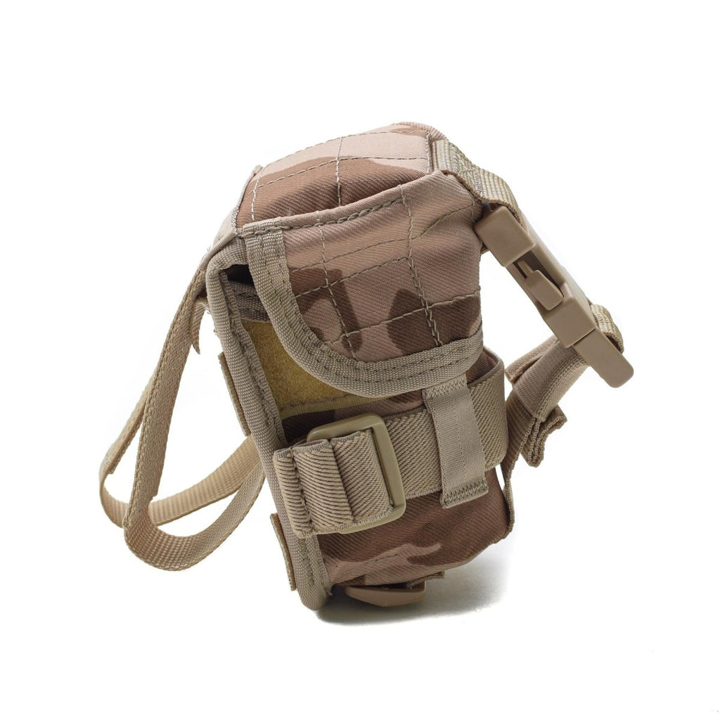 - Wykonany z trwałego, lekkiego materiału, ten pokrowiec zapewnia wytrzymałość i niezawodność. Posiada wzór kamuflażu pustynnego, który dobrze komponuje się z różnymi środowiskami, szczególnie w suchych miejscach. Etui jest zapinane na sprzączkę, dzięki czemu Twoje przedmioty pozostaną bezpieczne w ruchu.