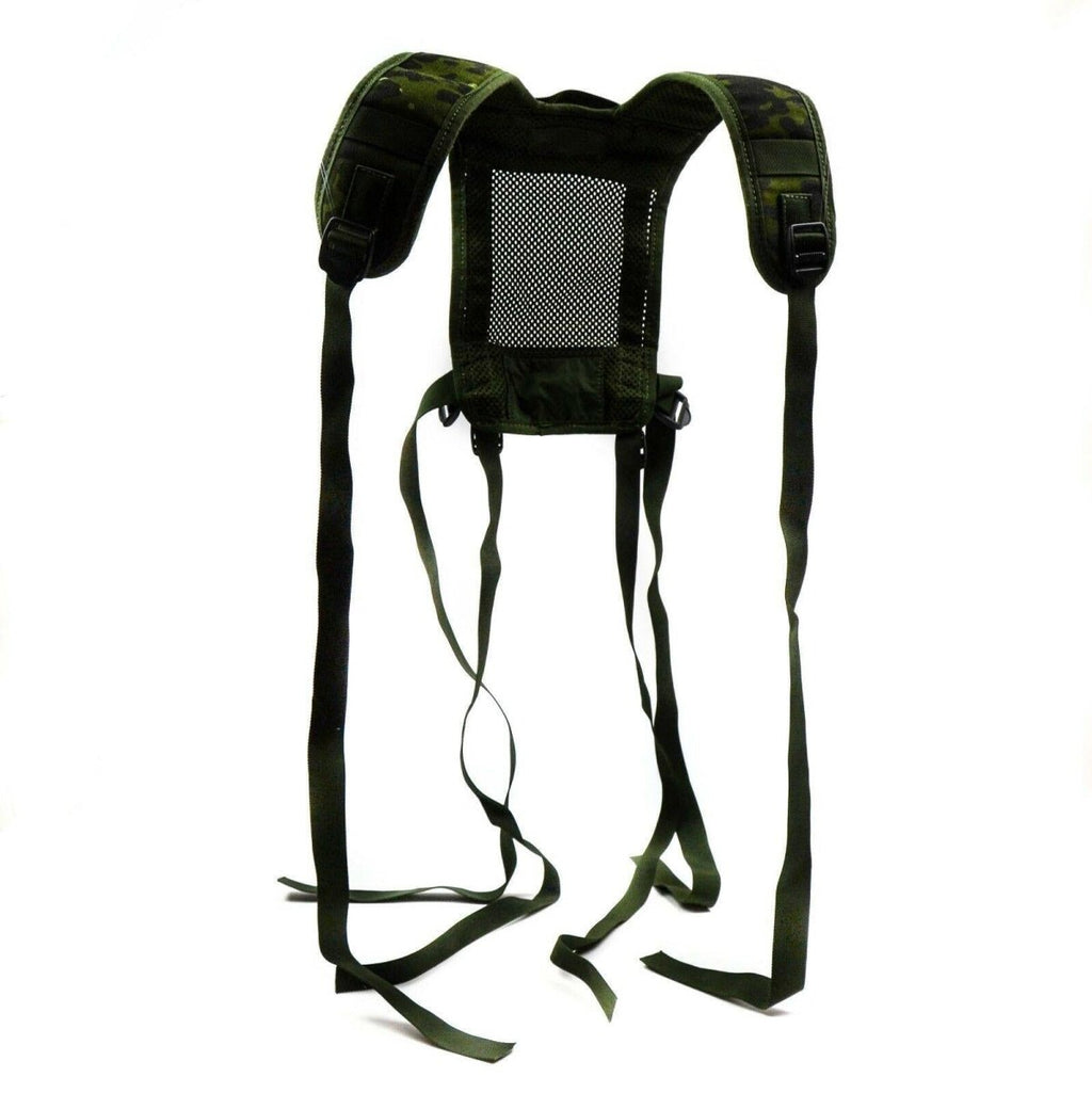 - Wykonana w 100% z poliestru uprząż pozostaje lekka, a jednocześnie oferuje wyjątkową wytrzymałość. Tkanina jest odporna na zużycie i rozdarcia, dzięki czemu doskonale sprawdza się w trudnych warunkach. Kamuflażowy nadruk zwiększa widoczność na zewnątrz, pomagając użytkownikom płynnie wtopić się w otoczenie.