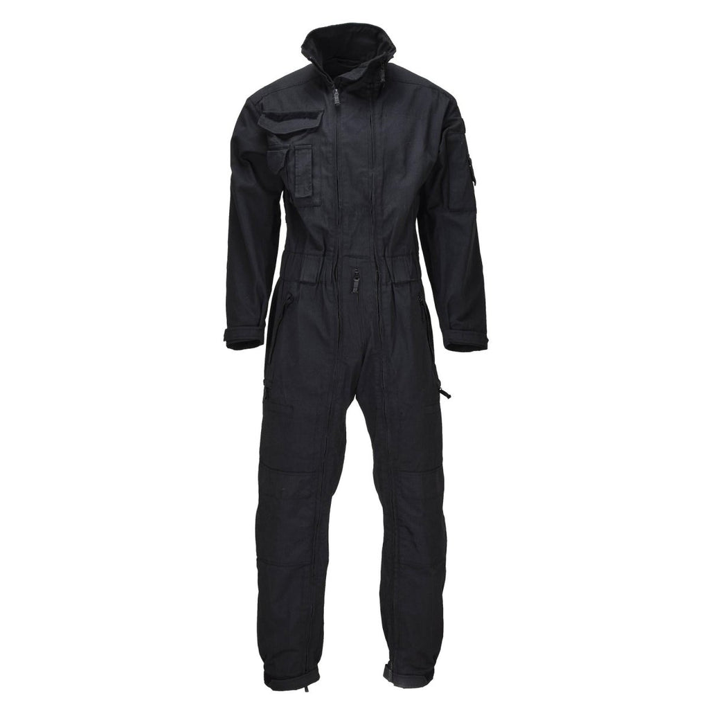 Oryginalny holenderski wojskowy kombinezon lotniczy wzmocniony na kolanach z podwójnym zamkiem w kolorze czarnym