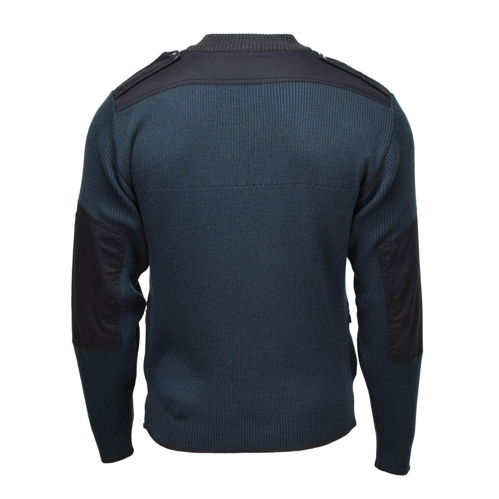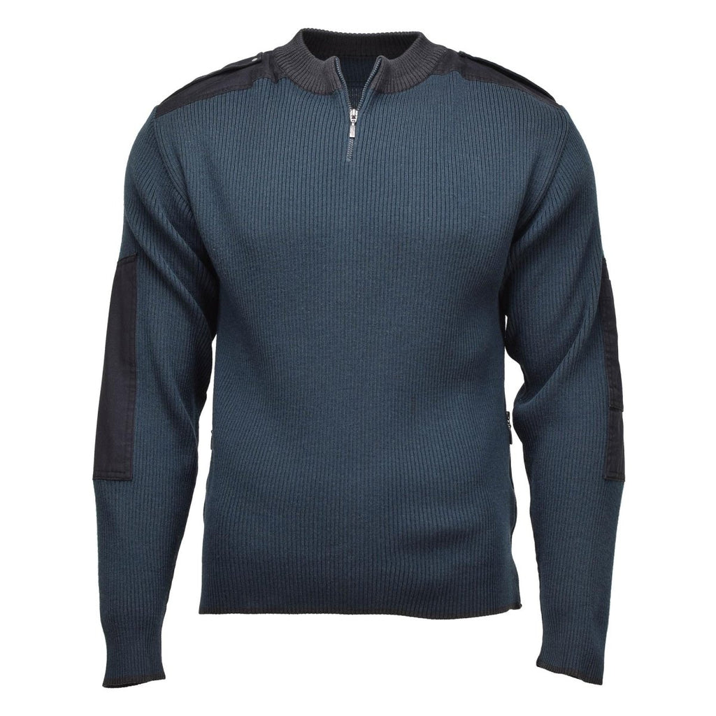 A Genuine Dutch military troyer pullover rib knit cold weather blue sweater is a type of sweater that is designed to keep you warm in cold weather conditions. It typically has a rib-knit texture, which makes the sweater stretchy and flexible, and is made from a wool-blend material.