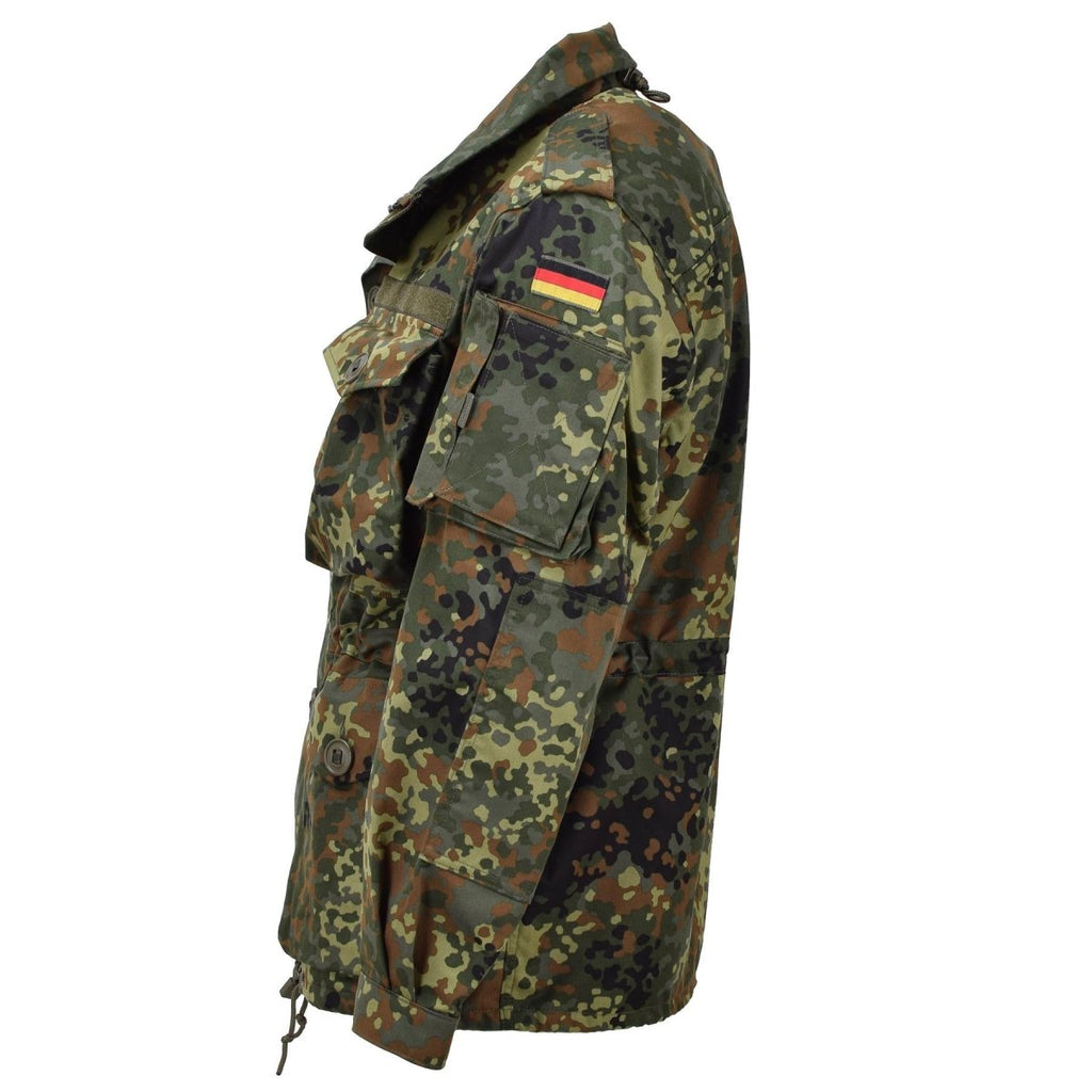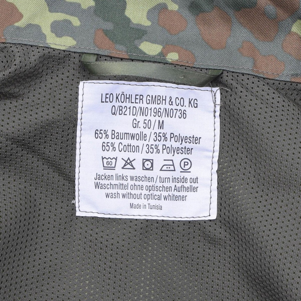Introducing the Leo Kohler Military Combat Tactical Jacket in flecktarn camo, a premium garment blending style with functionality. Crafted from a durable cotton blend, this German army jacket guarantees comfort and longevity.