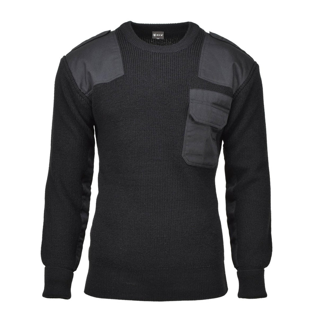 MFH Brand sweater commando jumper rib knit wool reinforced pullover black NEW