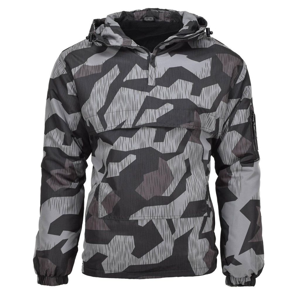 The MIL-TEC Military combat Anorak jacket splinter camouflage is a winter jacket designed for use by military personnel. It features a splinter night camo pattern, which is intended to provide camouflage in a variety of environments. The jacket is made from durable materials and is designed to keep the wearer warm in cold weather. It may include features such as pockets, hoods, and zippers to provide additional functionality and utility.