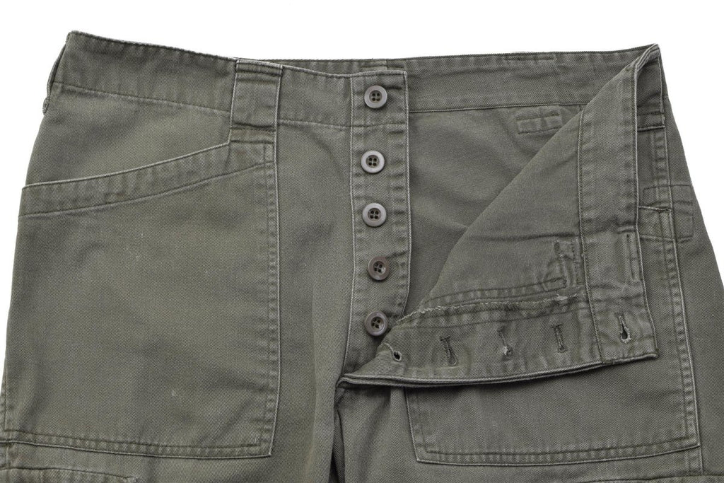 • Moreover, these original military work pants feature belt loops, allowing you to accessorize with your favorite belt for a personalized fit. The plain end ankles provide a clean and sleek look. Plus, the button fly adds a timeless touch to the overall design.