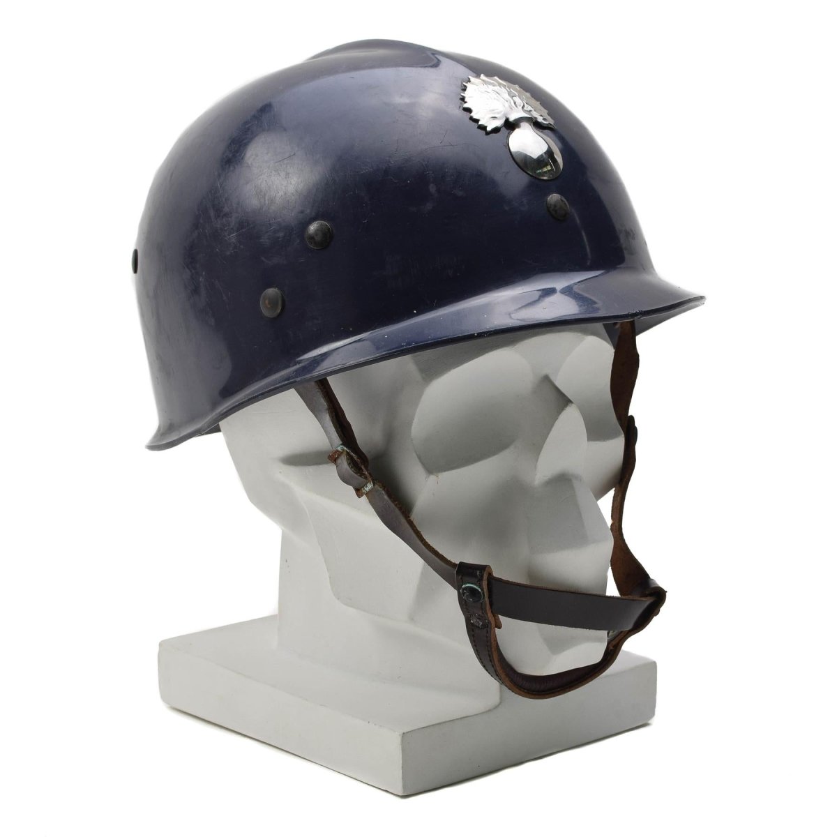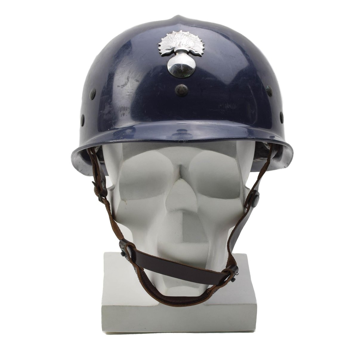 - Made from durable plastic, it combines lightweight protection with a timeless design. The classic blue color and vintage style make it an ideal addition for military enthusiasts or collectors of historical police gear.