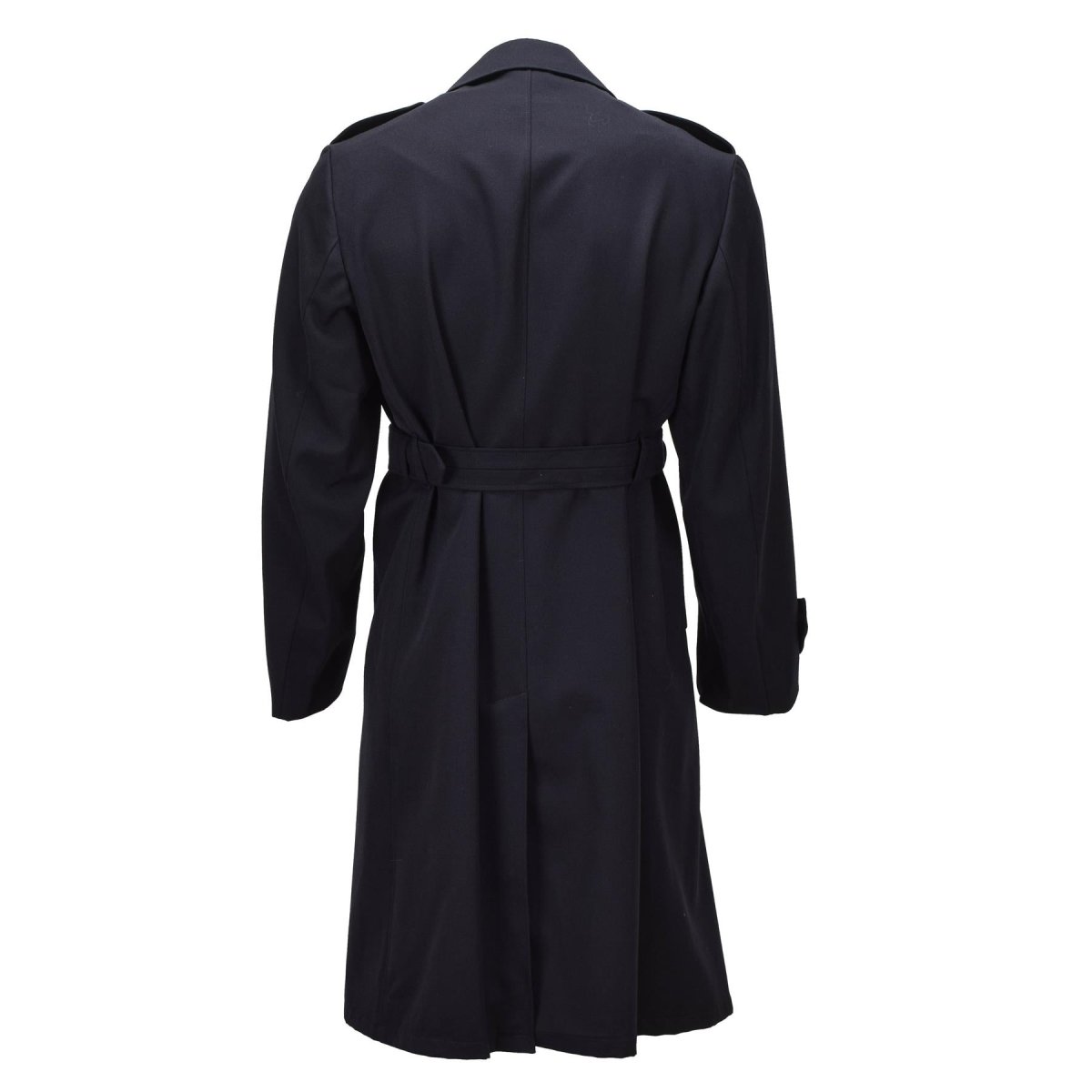 Condition description: Used Grade A military surplus coat. Good overall condition without liner. Includes original belt straps. Shade may vary from very dark blue to almost black depending on lighting and wear. Minor signs of use or storage marks may be present.