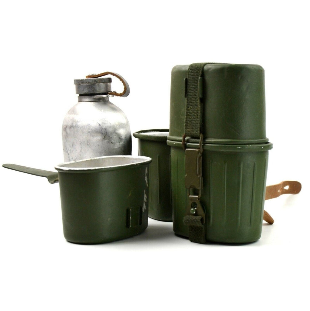 Prepare for reliable field use with this authentic Military Canteen with Cup from the German Army. This Original German Army Mess Kit Canteen Set combines hydration and basic cooking in one compact system. Soldiers designed it for efficiency in demanding outdoor conditions.